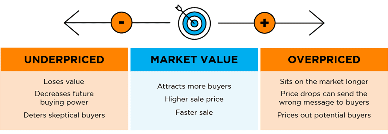 If it’s priced too low, you may leave money on the table or discourage buyers who may see a lower-than-expected price tag and wonder if that means something is wrong with the home.